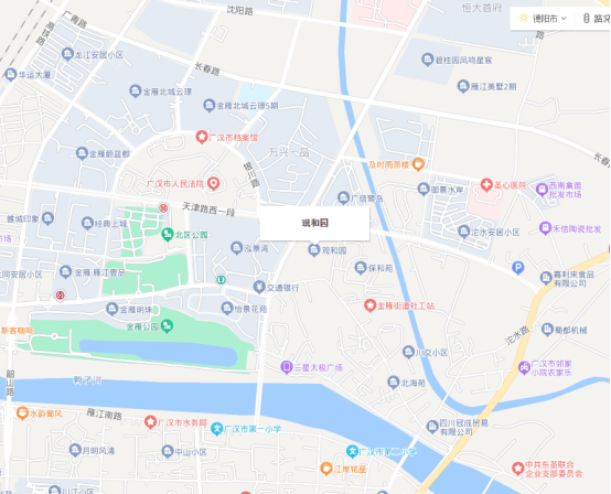 資產(chǎn)位于廣漢市區(qū)北京路與天津路交匯處,為新區(qū)中心,商住環(huán)境較佳,附近有多個住宅樓盤,政府機構(gòu)、金融機構(gòu)較集中。資產(chǎn)1號樓、6號樓的商業(yè)房產(chǎn),均位于一層,層高6.5米。樓上均為商業(yè)住宅式公寓。地理位置如下: